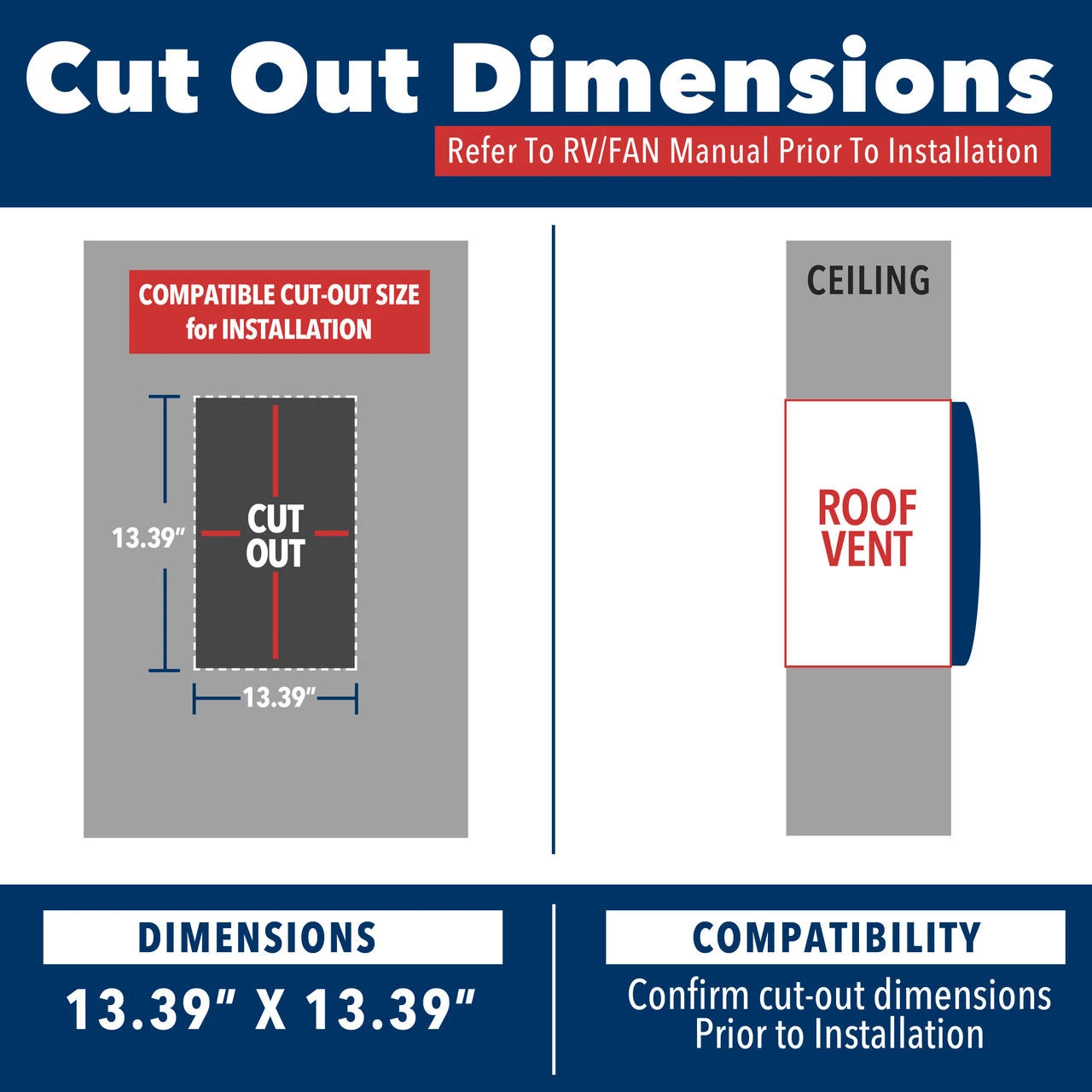 Compatible with 2″ to 4-1/2″ roof thickness. fits standard 14″ x 14″ openings