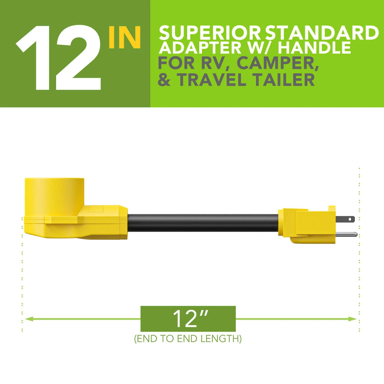 With this handy 12-inch 15a male to 50a female receptacle, you can plug in anywhere and forget your power worries. Visit friends and family in the comfort of your own home-away-from-home without having to run off battery power!