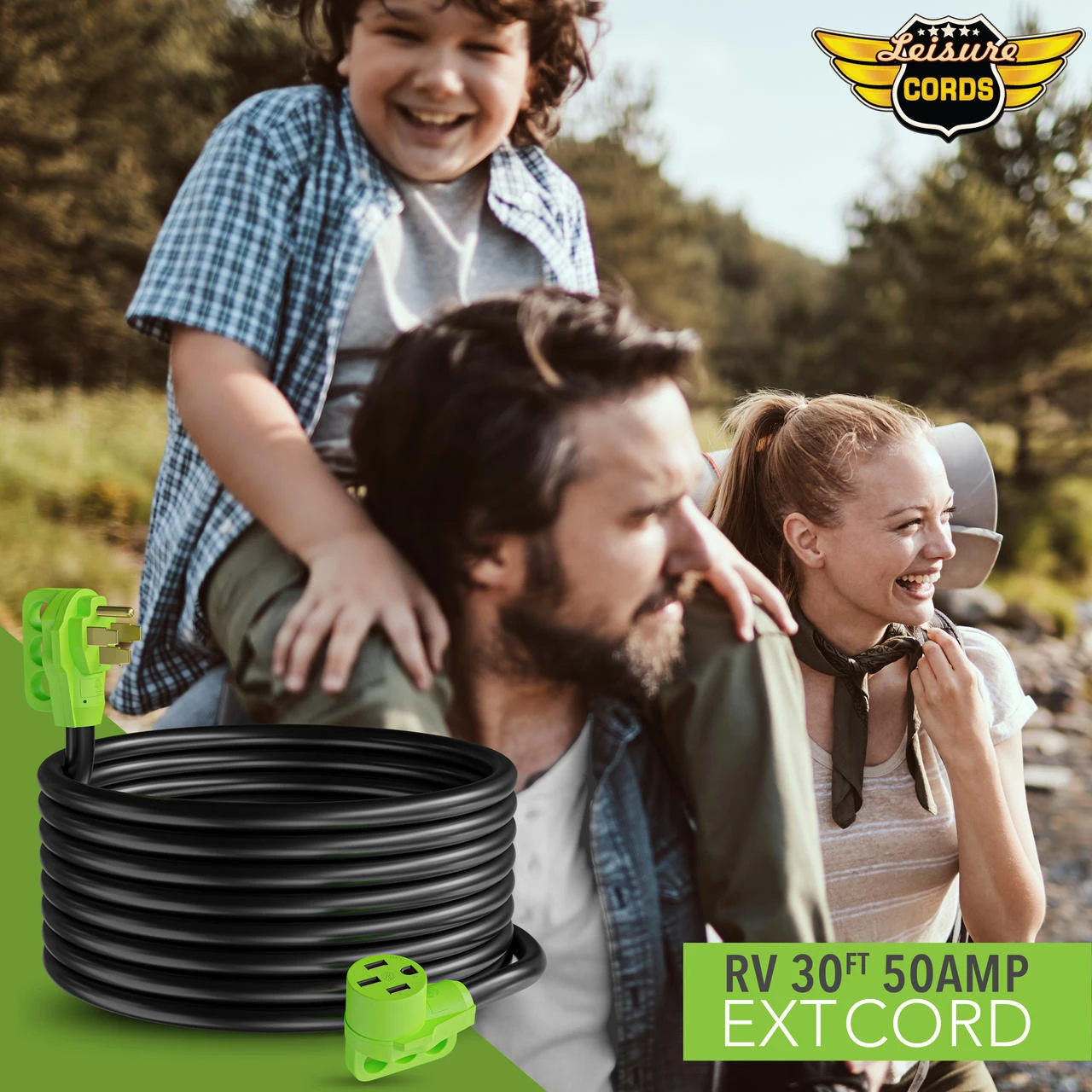 This RV power cord comes with a convenient LED power indicator so you can always tell when the power is flowing. Designed for outdoor use with a durable rubber jacket, this Leisure 50 Amp, 30 foot, RV power extension cord makes hooking up your RV a breeze.