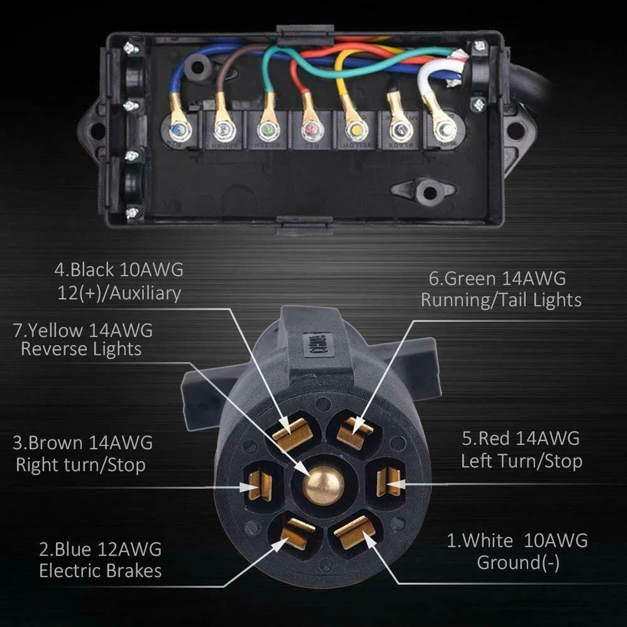 Package Included: 1 x 7-Way Trailer Plug with Junction Box Open Grommets Close Grommets