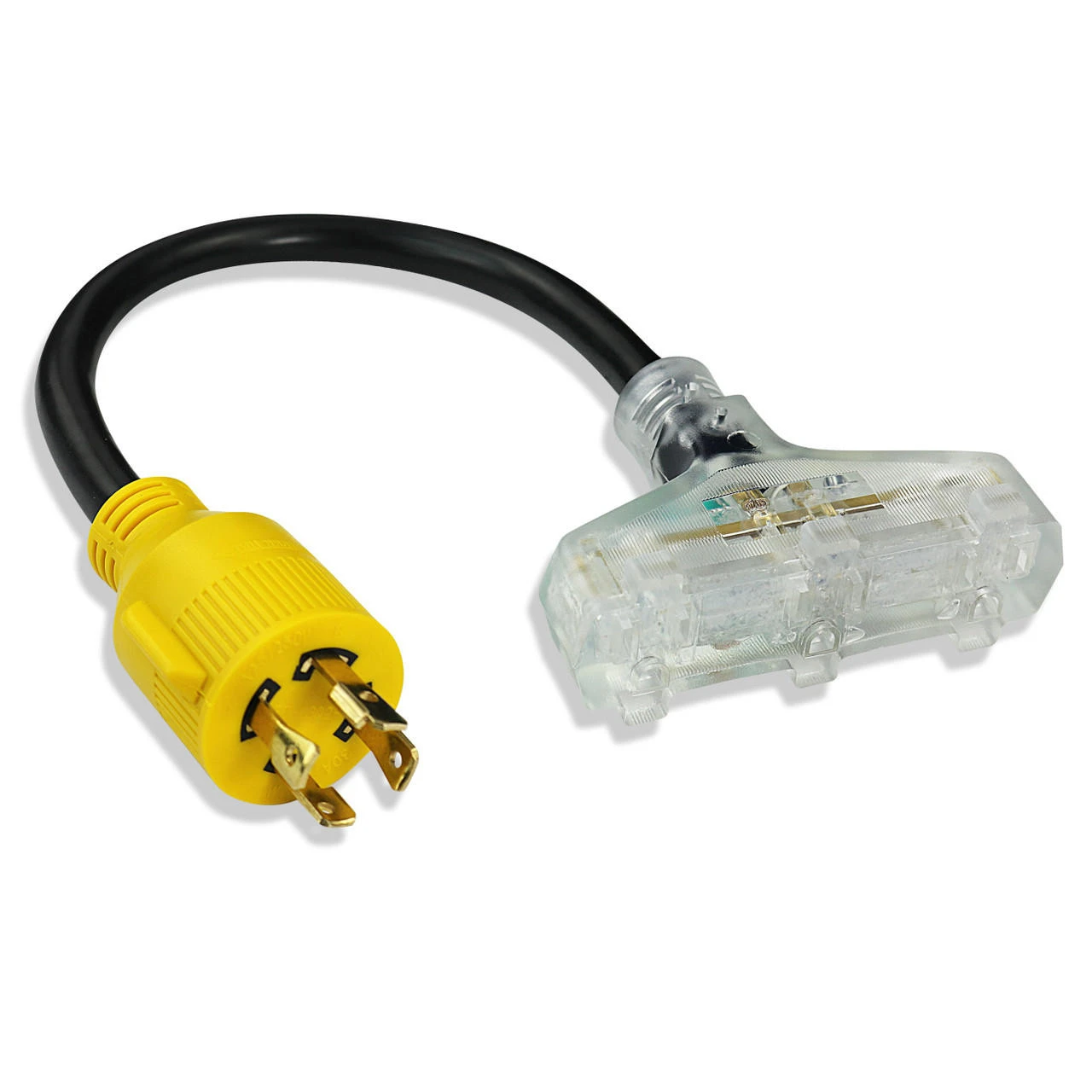 Gen RV 18″ 30 AMP Locking Plug To 3x 5-15R Standard RV Receptacle Generator Adapter With Grip