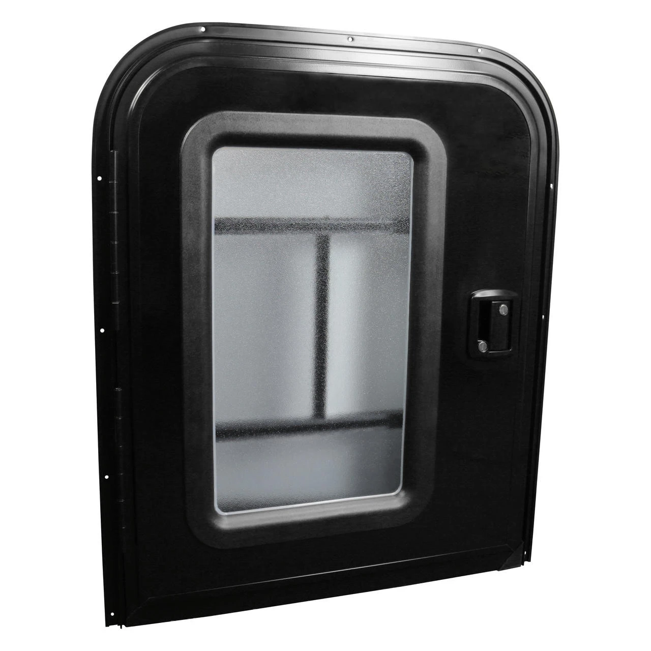 This entry door is designed for these special small RVs and can be installed on either the driver’s side or the passenger’s side. The door comes in black and comes with a widow with a screen door and a slider panel.