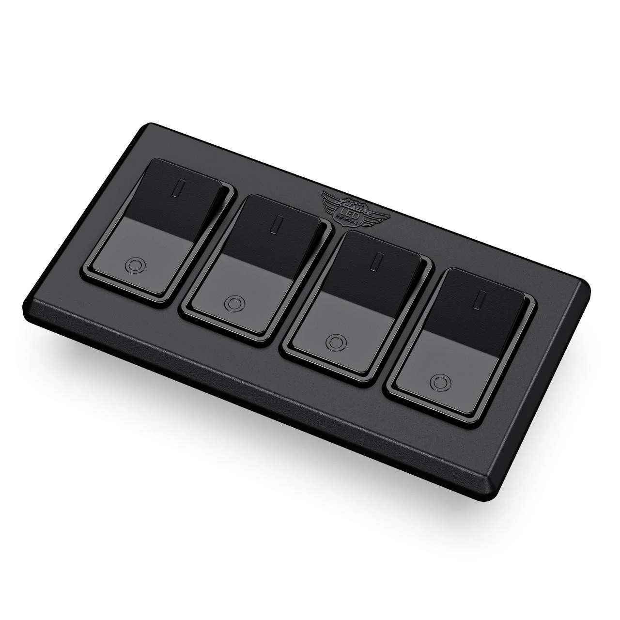 Leisure LED Modern Quadruple SPST On-Off Switch With Bezel, 12-Volt, For RV, Trailer, Camper, With Label Sticker