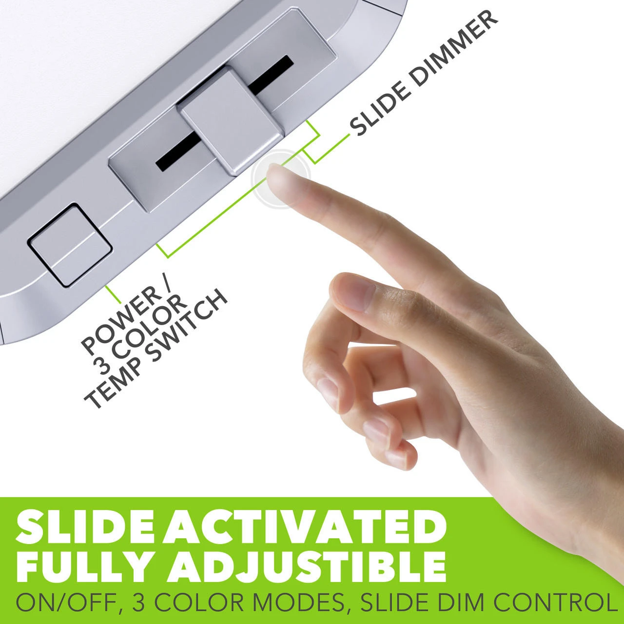 - Built in Slide to Dim Switch Design: switch enables you to go from Off to 25% – 50% – 75% – 100%; it adds great functionality to any area for lighting and it is widely used as perfect replacement light for older fluorescent tube light fixtures. Much Slimmer for more overhead space.