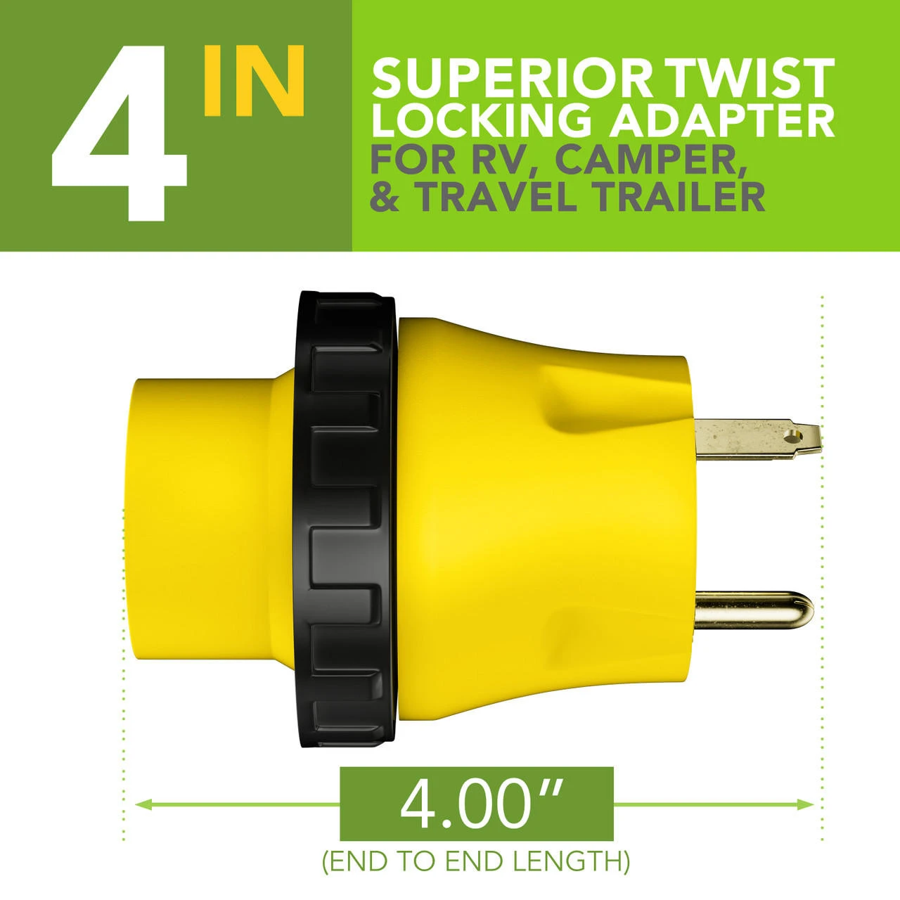 Product Details The ABN RV Power Cord Electrical Locking Adapter easily converts your plugs and quickly get back to business. Works great for for RV applications as well as generator cord adaptations. Includes: (1)30 AMP male to 30 AMP female adapter