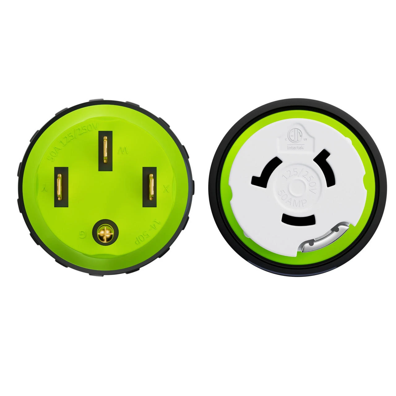 Clever fittings like this locking power cord adapter that goes from 50A male to 50A female is one smart way to smooth things out!