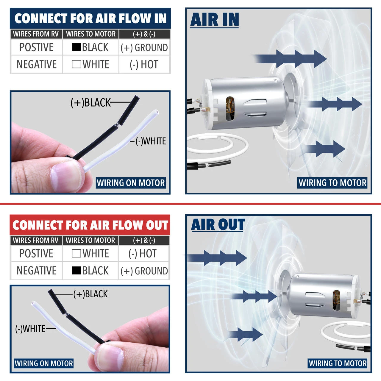 The 12-volt motor has six D-Shaft Leisure RV Fan Blades. It’s made from white impact-resistant plastic and features 6-inch blades. It is also easy to install and manufactured for use with 12 Volt powered roof vents and range hoods.