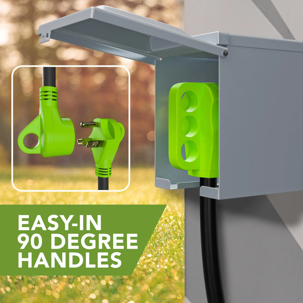 RV Y Adapter Cord 50 Amp Female Plug To Two 30 Amp Male 24″ With Handle