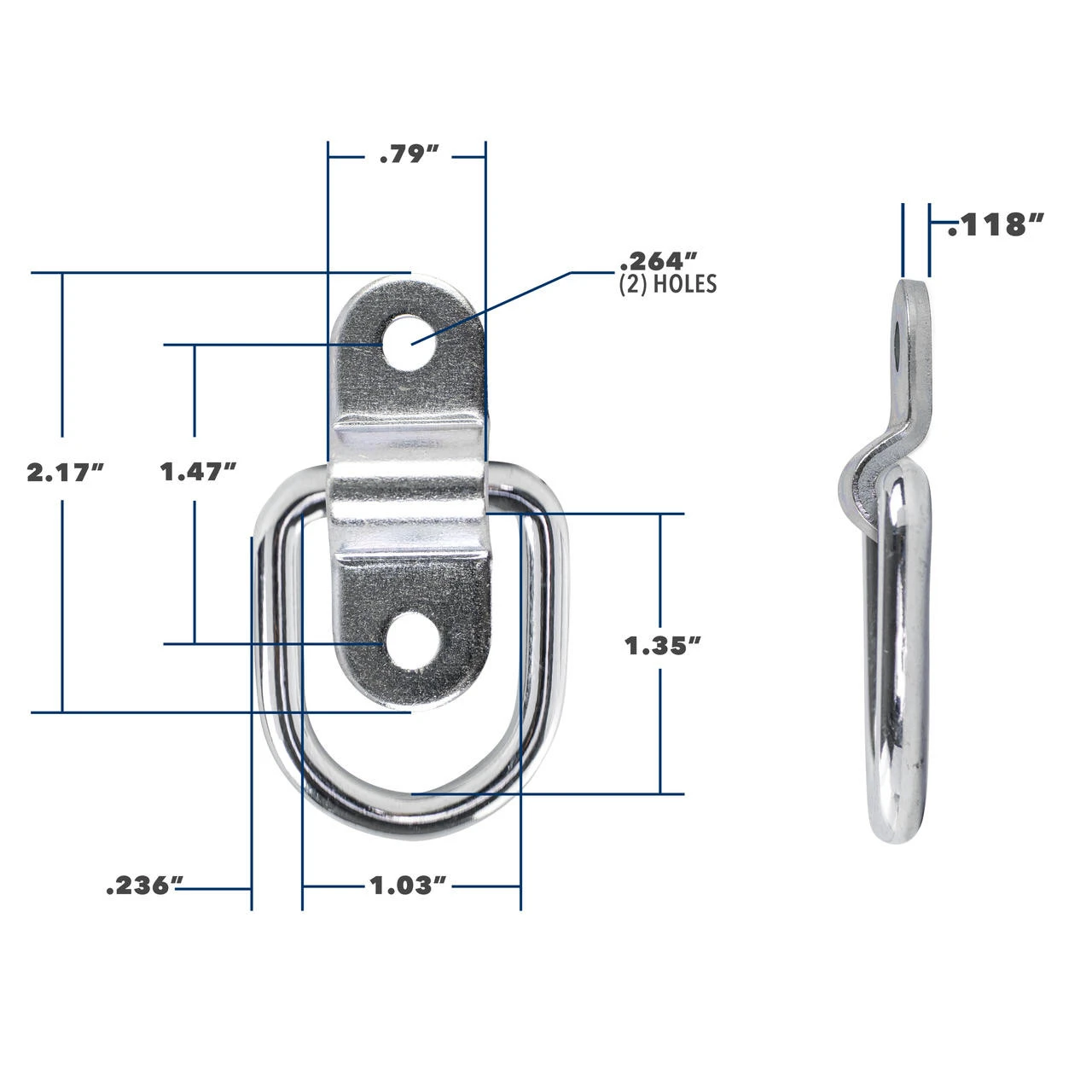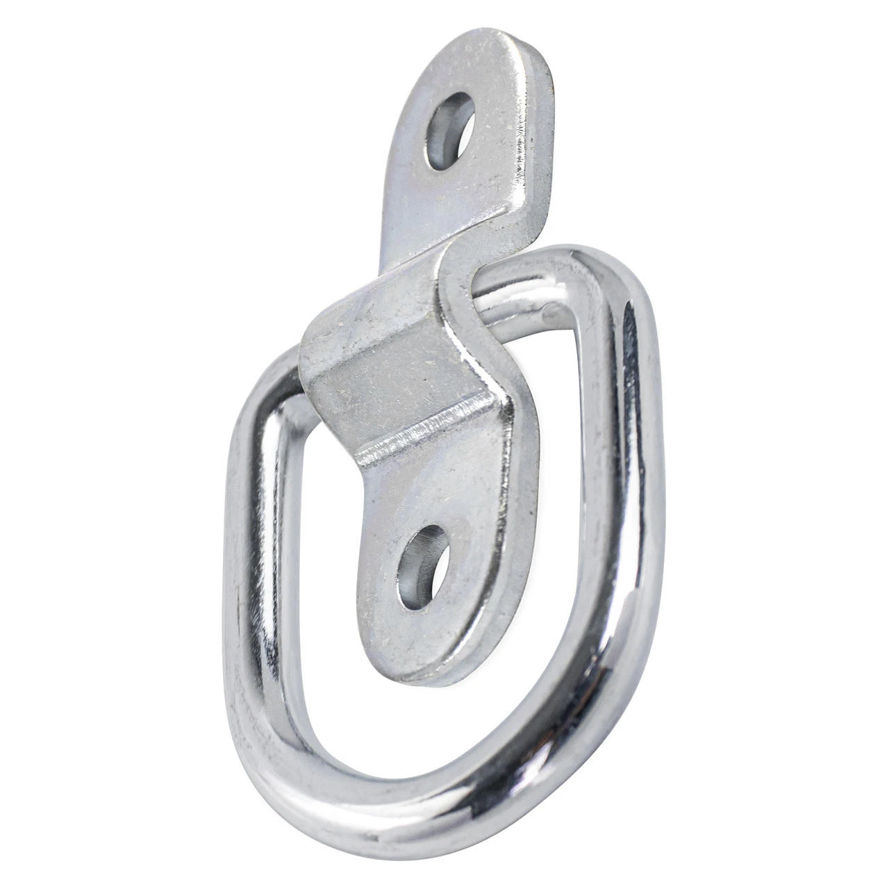The D-ring and attachment are made of stainless steel that will not rust or corrode. We recommend installation with stainless steel bolts, lock nuts, and wide diameter fender washers. Zinc-coated steel hardware is a less expensive option.