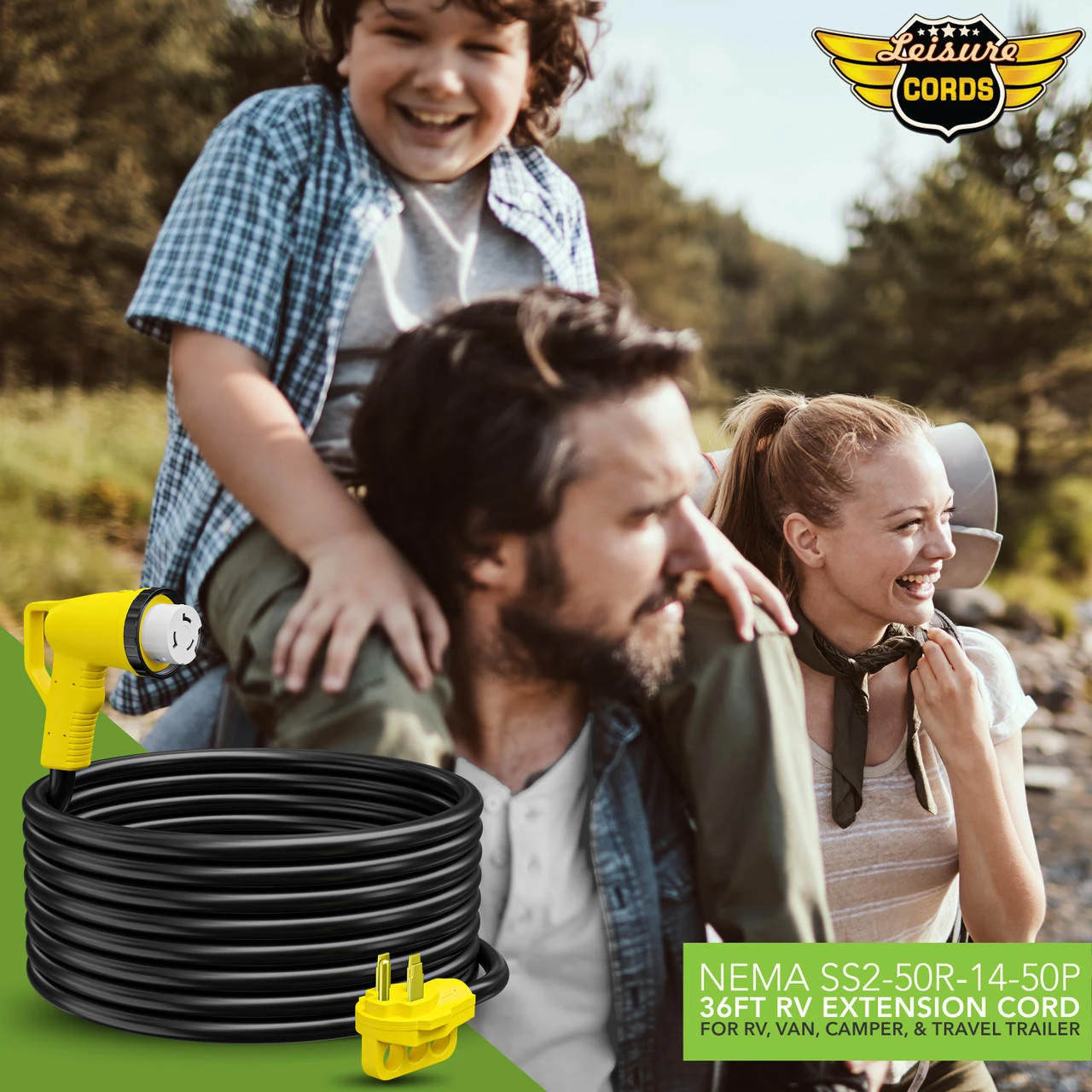 Power up your RV with Leisure Cord’s 36 foot, 50 Amp twist lock power cord. This durable, reliable cord has features you won’t find on other cords. The cord is a standard 50 Amp male to 50 Amp female with a twist locking connector and an LED indicator that glows green when you have power.